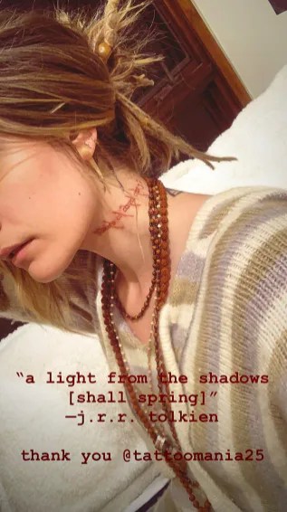 She has the single art from manchester orchestra's the mistake on her left arm, per the daily mail.